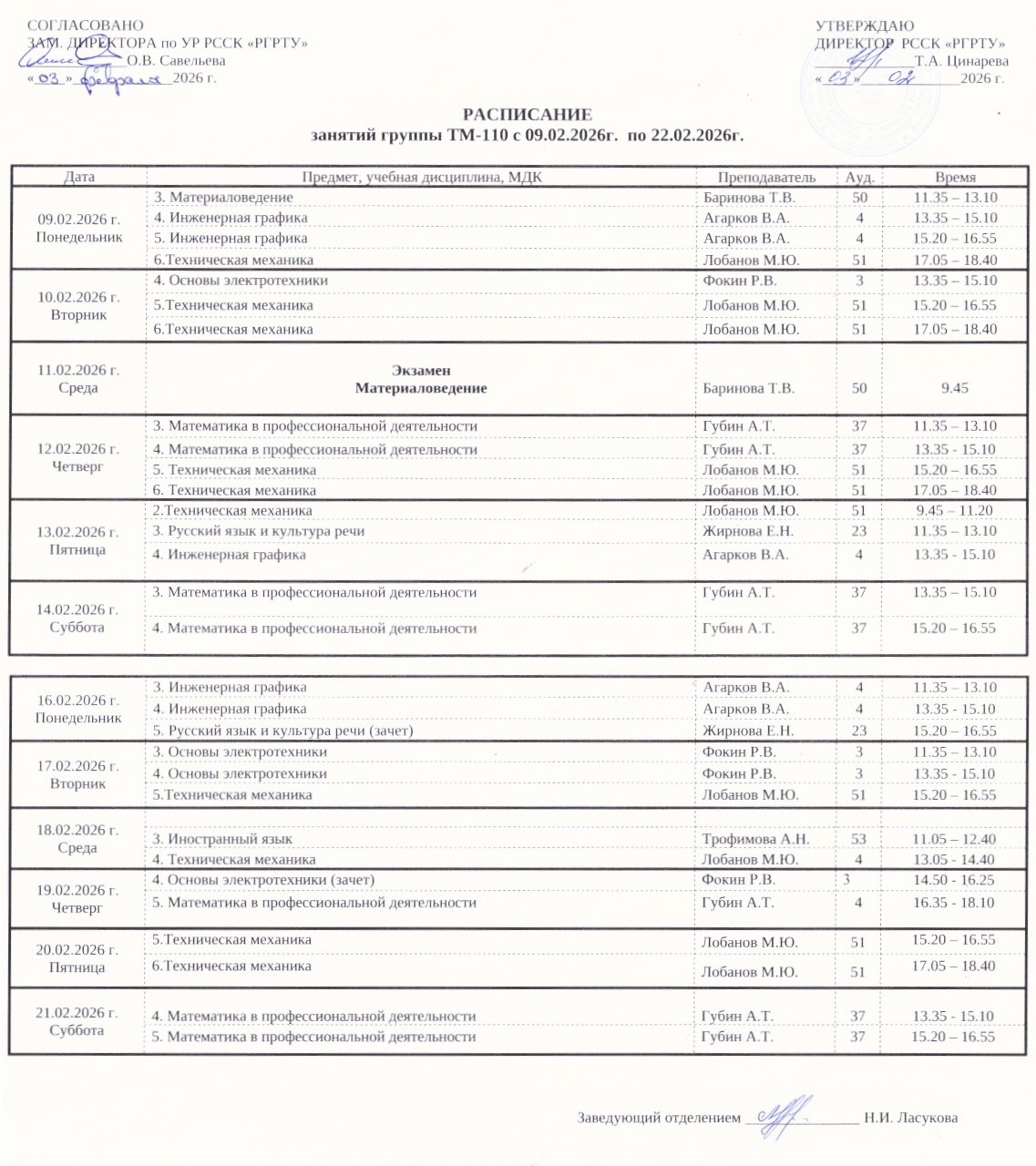 Расписание занятий 2025/2026: